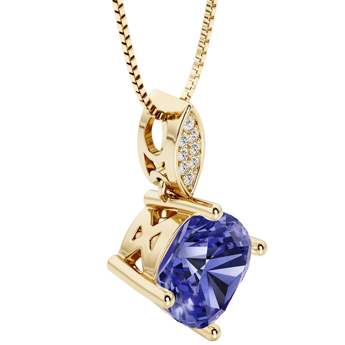 2.50 Carats Cushion Cut Tanzanite and Lab Grown Diamond Drop Pendant in 14K Yellow Gold