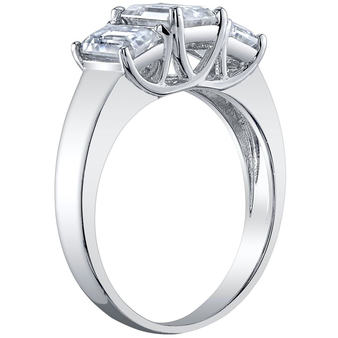 Moissanite 3-Stone Engagement Ring and Wedding Band Bridal Set Sterling Silver 2.50 Carats Emerald Cut