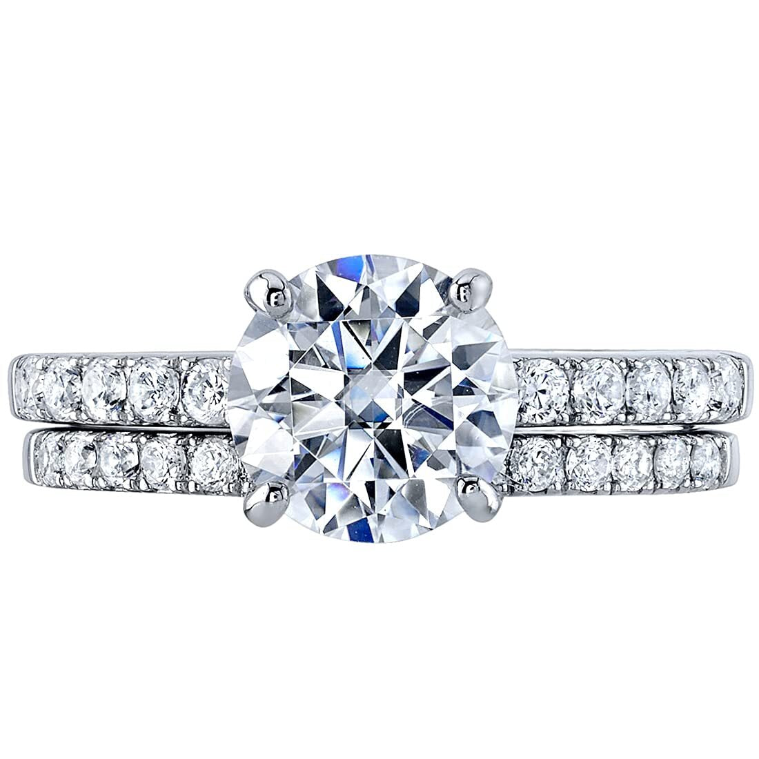 Moissanite Classic Solitaire Engagement Ring and Wedding Band Bridal Set Sterling Silver 2 Carats