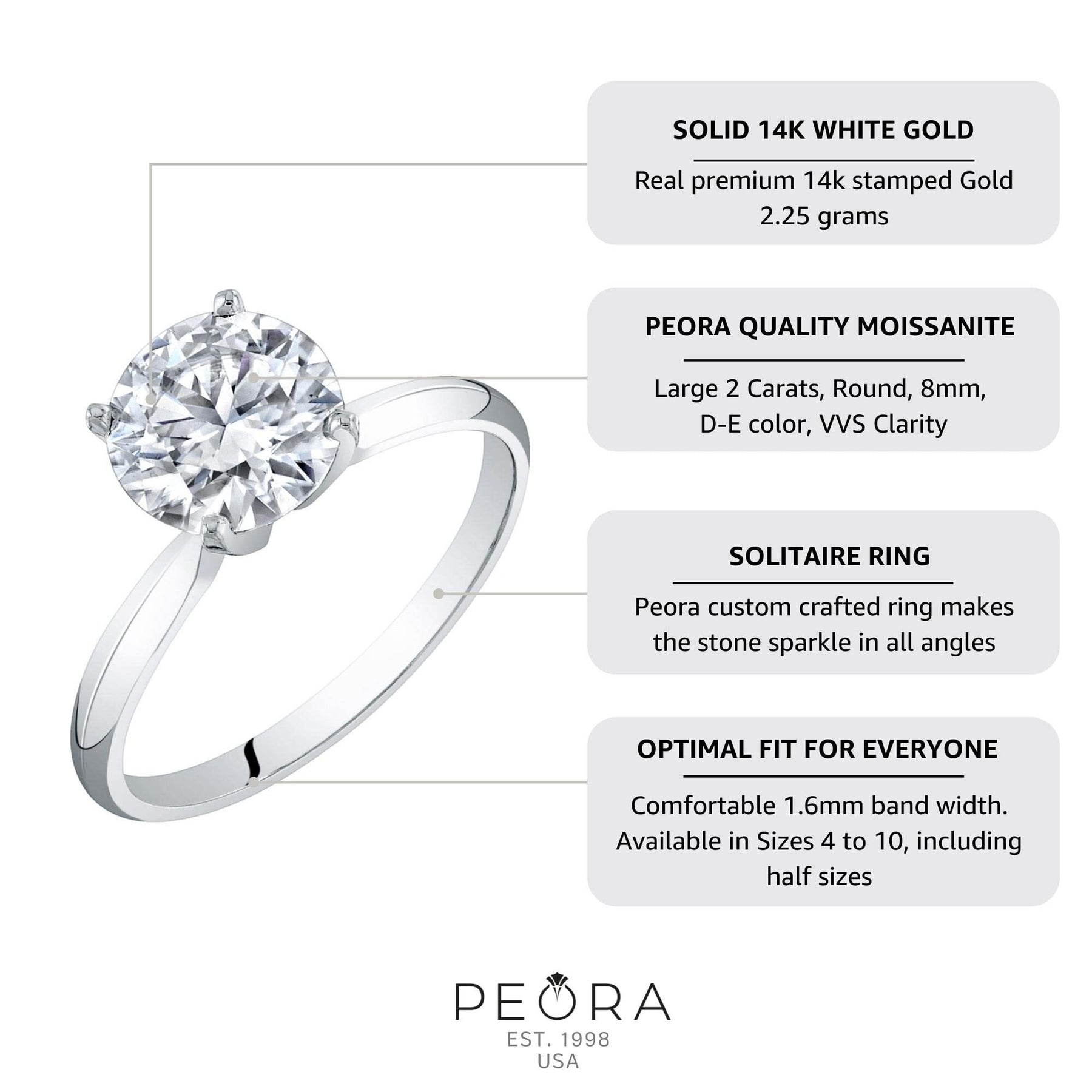 Moissanite Solitaire Engagement Ring 14K Gold 2 Carats