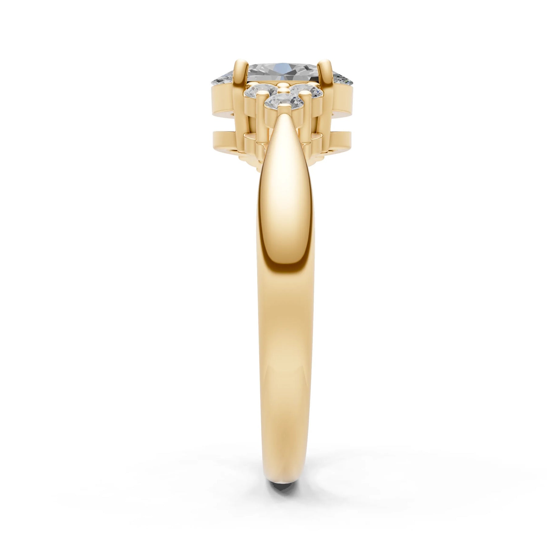 Presenting the stunning Peora Moissanite Ring, crafted in your choice of 10k, 14k, or 18k gold in White, Yellow, or Rose. This exquisite design features a brilliant oval Moissanite (8x6mm) surrounded by glimmering round accents, showcasing Peora’s commitment to quality craftsmanship. Each ring tells a story of artistry and care, highlighting the stunning D-color, VS1 clarity Moissanite that captures light in a mesmerizing dance. Peora is dedicated to creating responsibly sourced, luxurious pieces that resonate emotionally. Each jewelry piece arrives in a luxurious gift box, making it ideal for gifting or safekeeping.