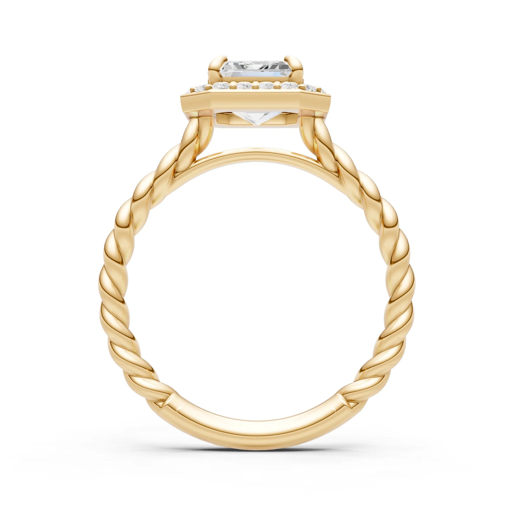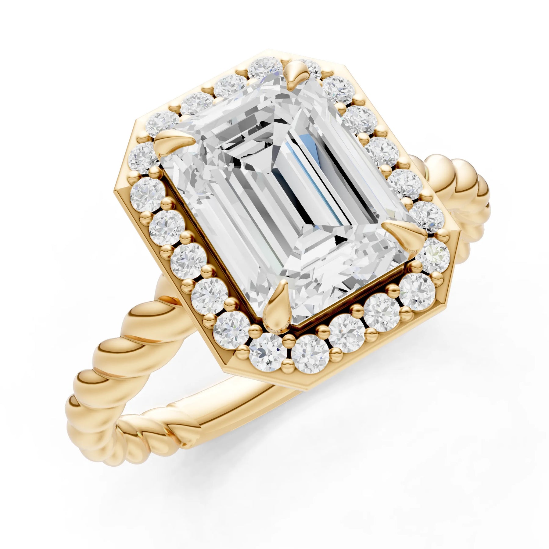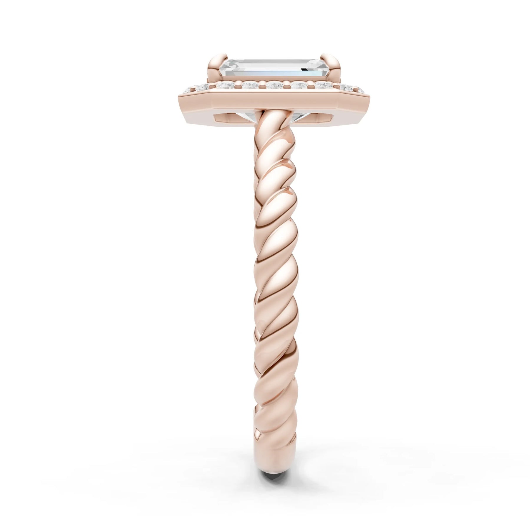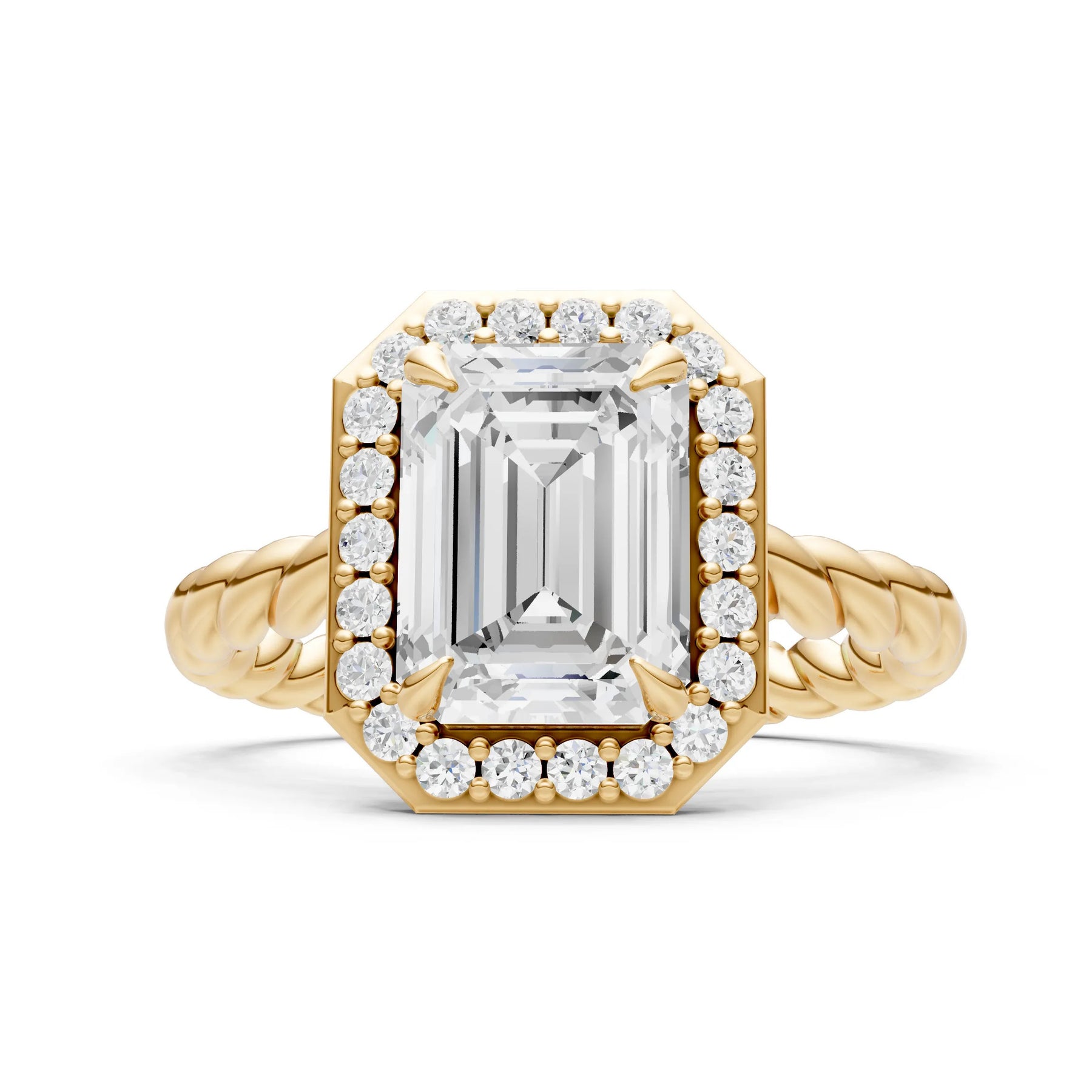 Moissanite Twisted Vine Emerald Cut Solitaire Halo Ring