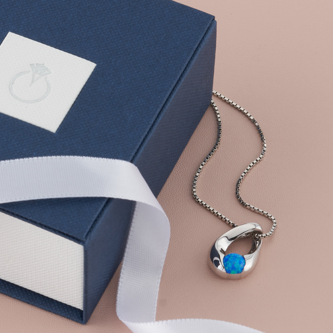 Created Blue Opal Pendant Necklace in Sterling Silver