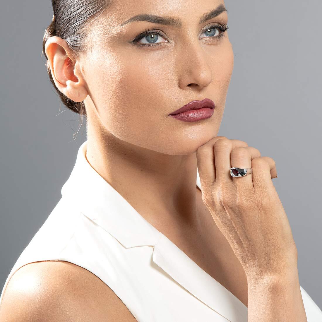 This classic ring features a marquise shape Peora natural Garnet gemstone in .925 sterling silver.