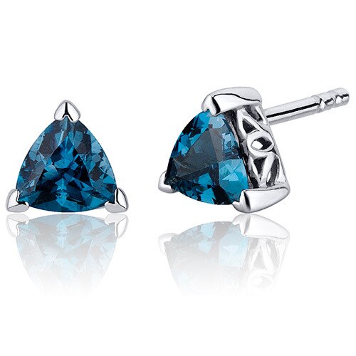 London Blue Topaz Stud Earrings Sterling Silver Trillion Shape