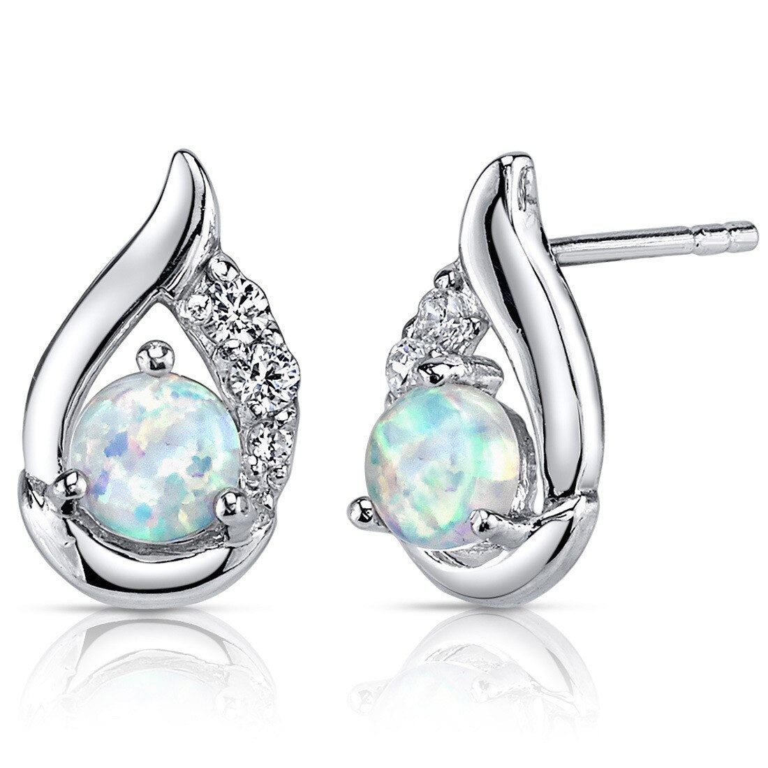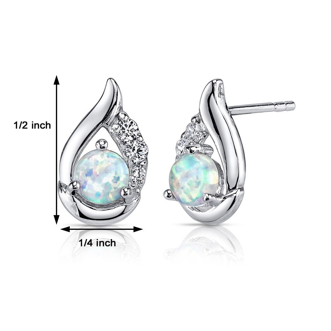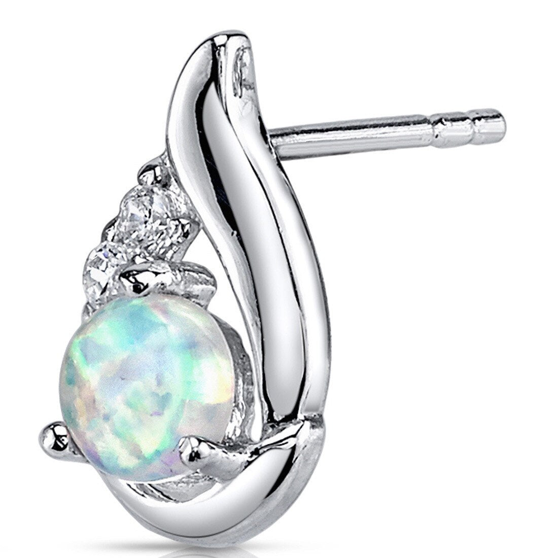 These standout earrings feature round shape Peora created Opal gemstones in .925 sterling silver.