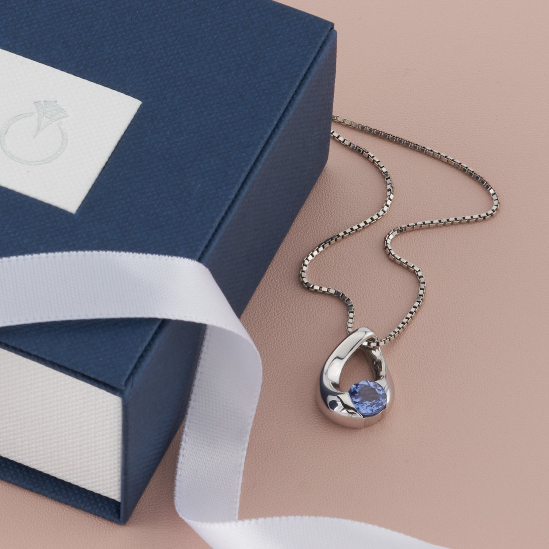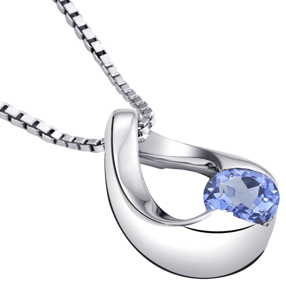 Tanzanite Slider Pendant Necklace Sterling Silver 1 Carat