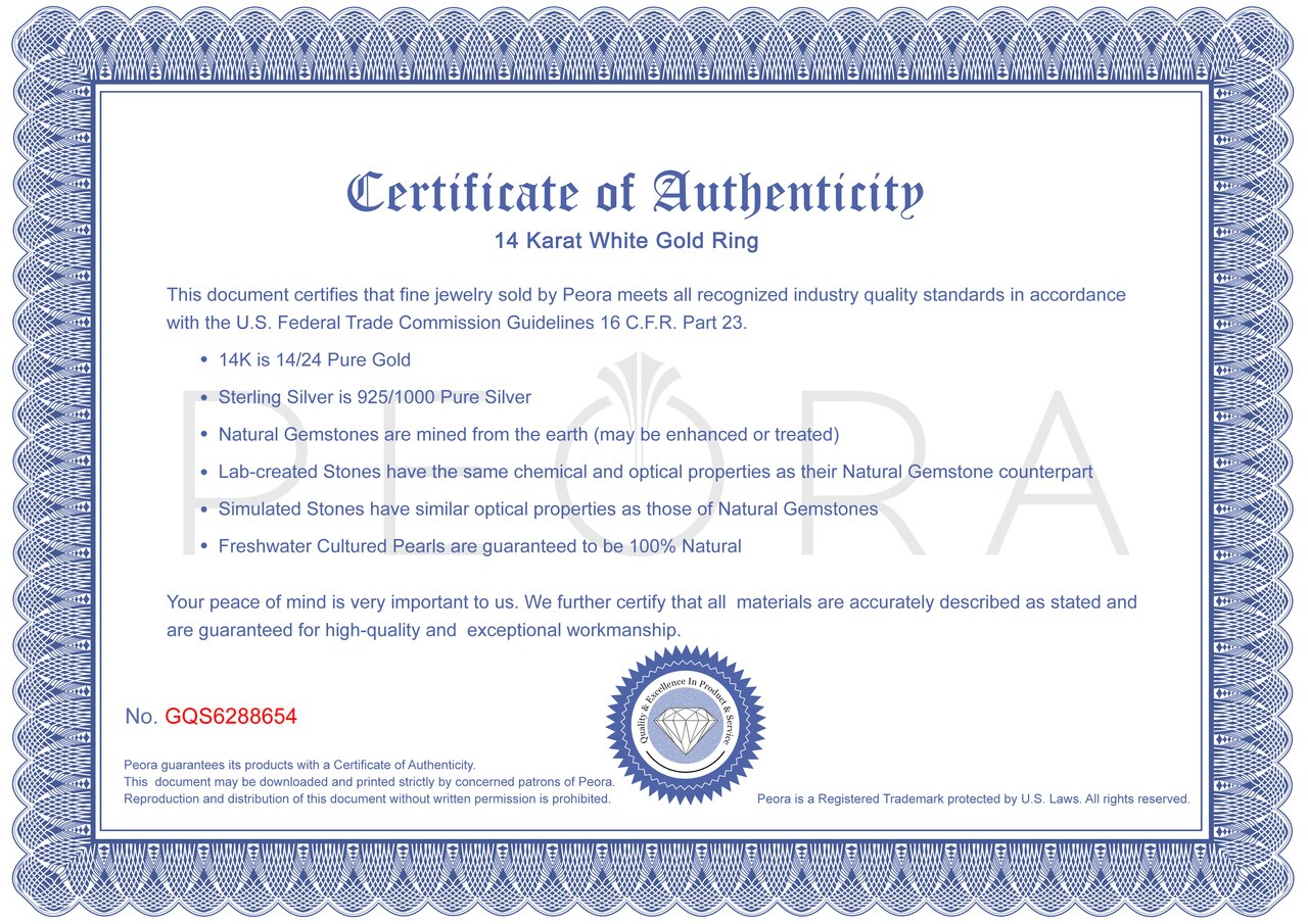 Handcrafted in pure 14K white gold goodness, this ring has been carefully coated in an elegant rhodium finish. Our artisans are expertly trained in this process which fortifies the ring's strength, shine and brilliance.