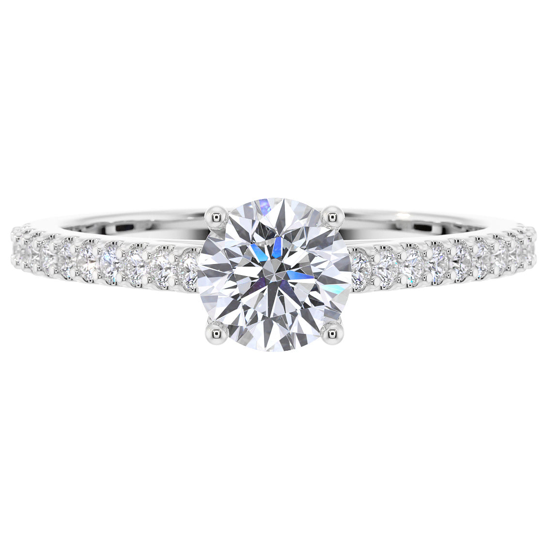 Exquisitely crafted in 14K Gold, this Cathedral ring exudes eternal charm, radiating timeless beauty. The 4-prong setting half eternity solitaire lab-grown diamond ring showcases a row of brilliant lab-grown diamonds encircling half of the band.