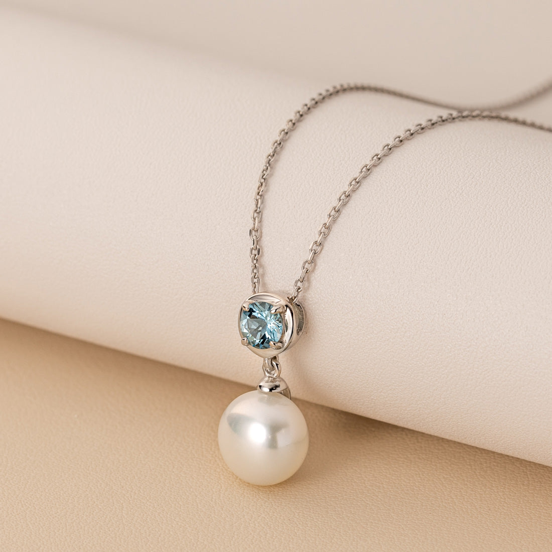 Freshwater Cultured Pearl & Aquamarine Birthstone Pendant Necklace
