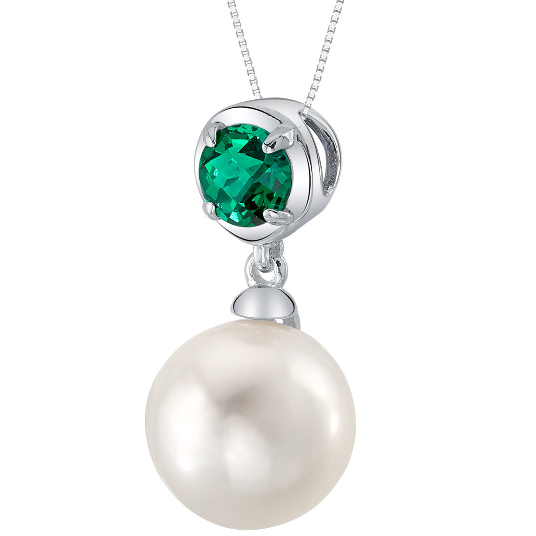 Freshwater Cultured Pearl & Emerald Birthstone Pendant Necklace
