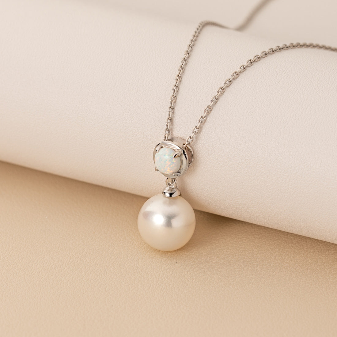 Freshwater Cultured Pearl & White Opal Birthstone Pendant Necklace