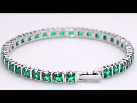 Video of Simulated Emerald Bracelet Sterling Silver Princess Shape 13 Carats SB4310. Includes a Peora gift box. Free shipping, 30-day returns, authenticity guaranteed.
