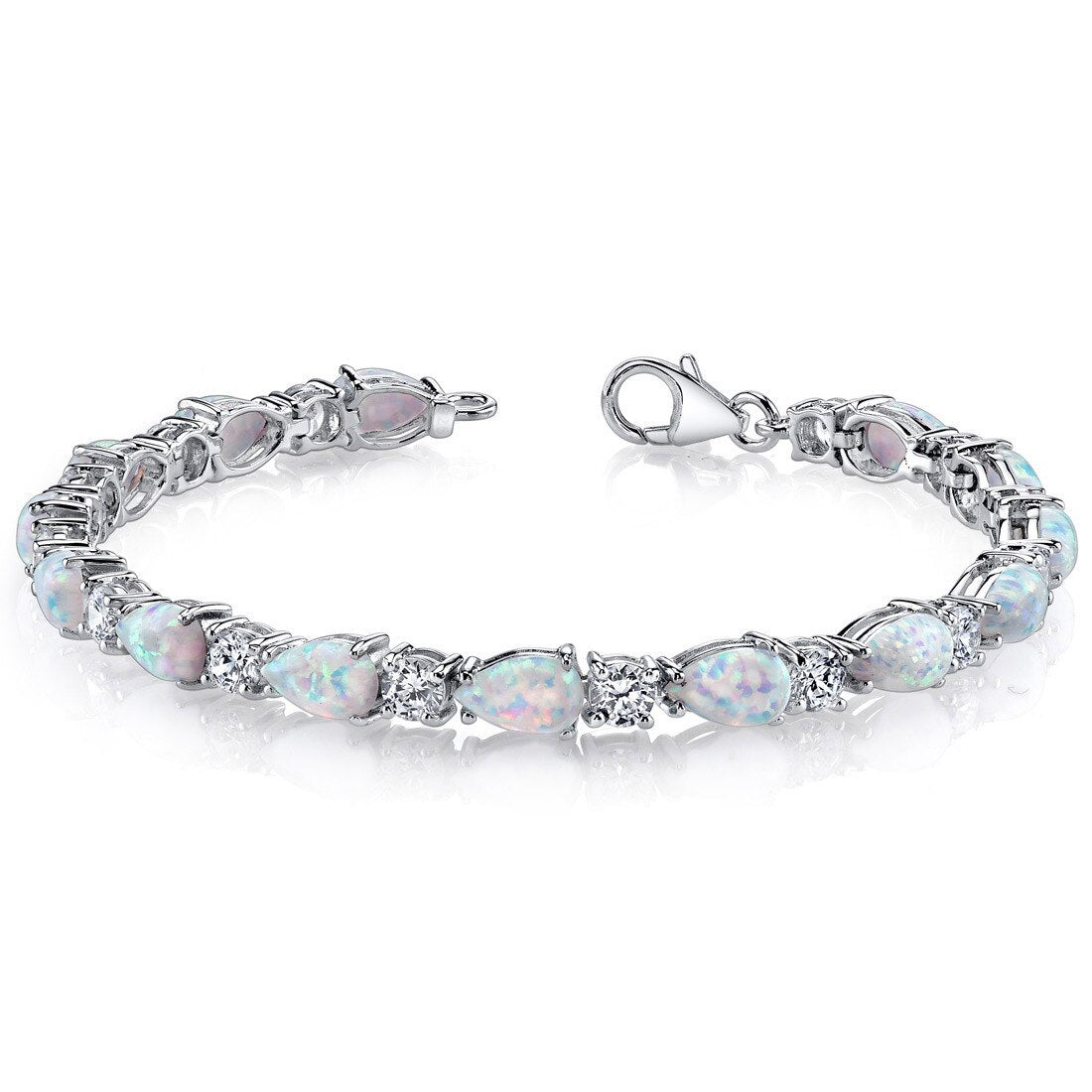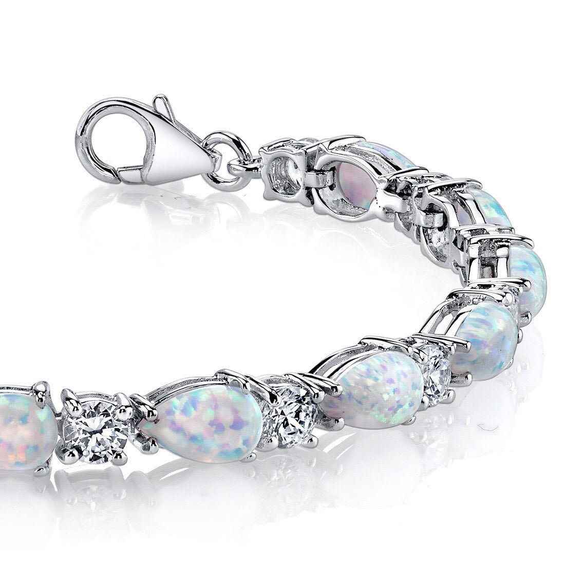 Opal Teardrop Tennis Bracelet Sterling Silver Pear Shape 10 Carats